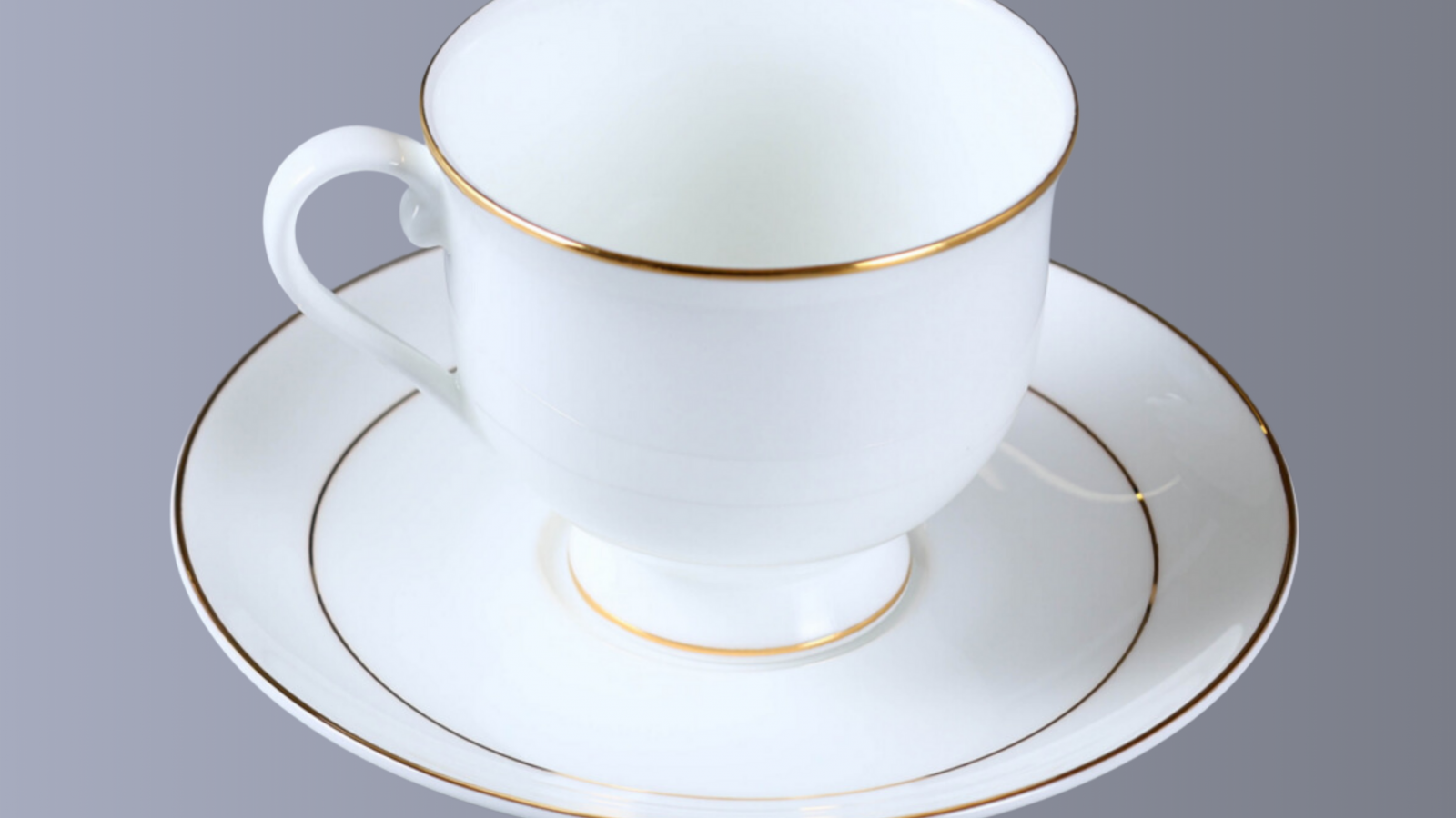 4CUP001001 – WHITE BONE CHINA CUP AND SAUCER WITH GOLD LINE 4X3X3 + 6 (2)